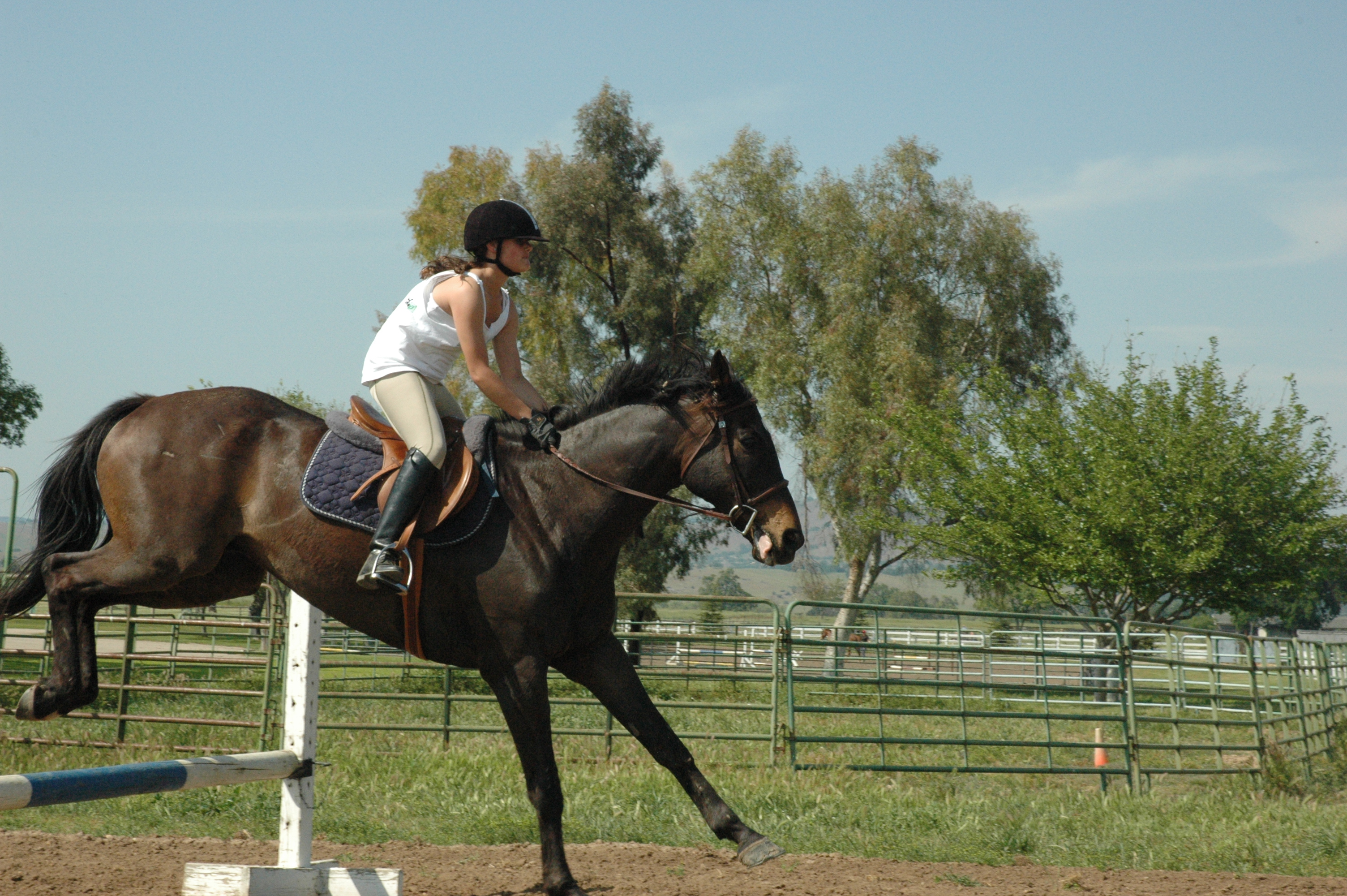 Madison Austin and Cody on a fun gallop around the track - taking it all in stride (jump included!)